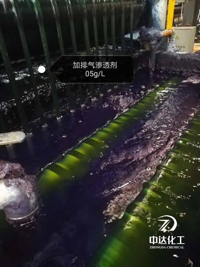 能使染液像水面一样平净,对于前处理欠佳的纱线,由于其毛效不均匀,对染料的亲和性有差异可导致色花色点。而排气剂的优异润湿性渗透性可改变纱线的毛效,从而改善亲和力。也就起到匀染的效果。再有排气剂平衡解水电位的作用。中达水剂ZD-105使用可使硬水染色和长时间附水染色的工艺起提高颜色亮度的作用。如使用在上浆上可使浆液无起泡性,减少或避免浆斑的产生。综上所述,排气剂是新型牛仔染色中不可缺少的新型助剂。